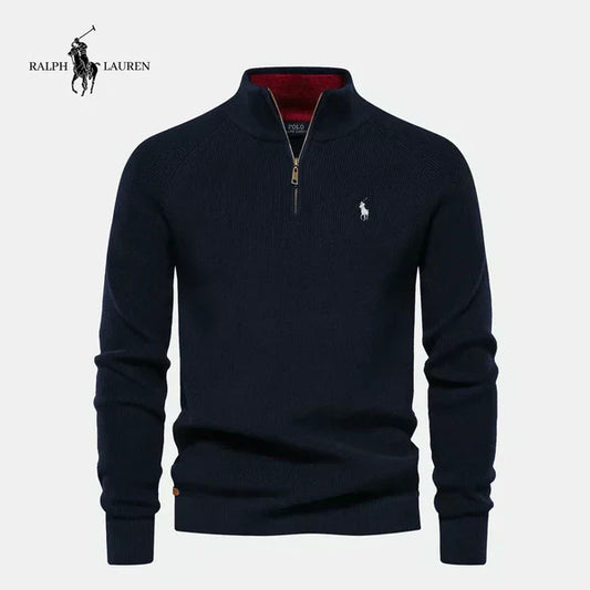 Rl - Maglione a maglia con zip a metà